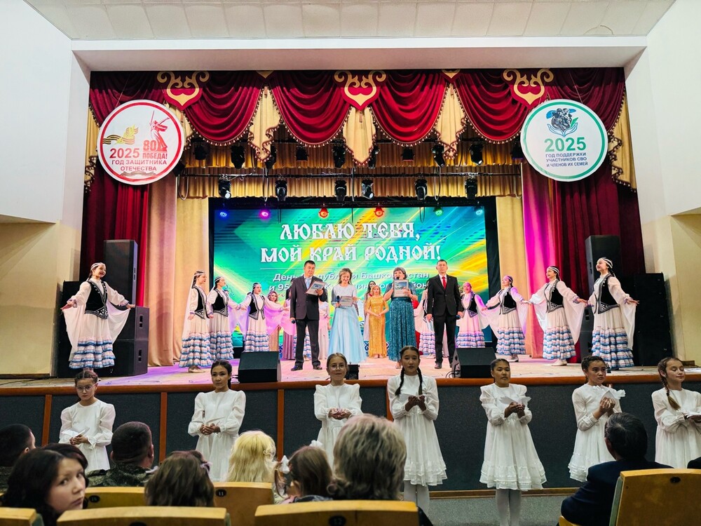 | 10 октября в районе прошли мероприятия, посвященные Дню Республики Башкортостан и 95-летию образования Кугарчинского района. По традиции были приглашены почетные гости: председатель Государственного комитета Республики Башкортостан У.С. Искандаров, заместитель председателя Комитета Государственного Собрания Курултая Республики Башкортостан Ф.Н. Муратбакиев и главный врач ГБУЗ ГБ г. Кумертау Г.С.Маркелов. В День Республики в селе Новониколаевка открылся новый фельдшерско-акушерский пункт в рамках государственной программы национального проекта «Развитие здравоохранения». ФАПы во все времена были важными социально значимыми объектами для населения. Теперь и в Новониколаевке появился свой современный, а главное тёплый и уютный здравпункт. Затем состоялось открытие детской спортивной площадки в микрорайоне «Северный» с. Мраково. Спортивная площадка стала отличным подарком в преддверии Дня Республики и юбилея района. Теперь она станет центром здоровья, духовного и физического развития детей и подростков, а для кого-то первым шагом к высоким спортивным достижениям. В Аллее Славы прошла торжественная церемония возложения корзины цветов к мемориалу Вечный огонь. Минутой молчания, присутствующие почтили память всех погибших в Великой Отечественной войне, участников военных боевых действий, локальных войн и героев специальной военной операции. После возложения гости последовали в Районный дворец культуры на праздничный концерт «Люблю тебя, мой край родной». В концертном зале присутствовали ветераны труда, уважаемые земляки, почетные жители нашего района, руководители трудовых коллективов, организаций и учреждений села. С поздравительным словом к гостям и жителям обратился глава Администрации муниципального района Кугарчинский район М.С. Искужин. Марат Салимович пожелал всем мира и добра, уверенности в завтрашнем дне, благополучия, новых свершений и достижений на благо и процветание нашей Республики! В праздничный день в целях признания выдающихся заслуг в области государственной, муниципальной, научной, культурной деятельности, были награждены лучшие работники, которые внесли и вносят достойный вклад в развитие Кугарчинского района. Открыла праздничный концерт вокально-хореографическая композиция «Башкортостан» с участием сводного вокального ансамбля РДК, хореографических и фольклорных коллективов. Концерт продолжили сводный духовой оркестр РДК и МДШИ, народный мужской вокальный ансамбль РДК (рук. заслуженный работник культуры РБ Ришат Бадретдинов), лауреат республиканских, международных конкурсов Ляйсан Мавлеткулова, ансамбль народного танца «Гурляук» (рук. Илюза Нигаматуллина), вокальное трио Мраковской детской школы искусств им. З.Биишевой (рук. заслуженный работник культуры РБ Флорида Каримова), образцовый танцевальный ансамбль «Грация» МДШИ им.З.Биишевой (рук. Гульшат Байтуганова), образцовый фольклорный ансамбль «Веретенце» Центра детского творчества (рук. Елена Спирина), народный женский вокальный ансамбль «Вдохновение» (рук. Галим Кинзябулатов), кадетский класс им. Ю.С. Климова с песней «Россия», лауреат республиканских, всероссийских, международных конкурсов Аиша Зиганшина, вокальный женский ансамбль «Ляйсан» (рук. Ляйсан Мавлеткулова). Завершил праздничный концерт заслуженный работн