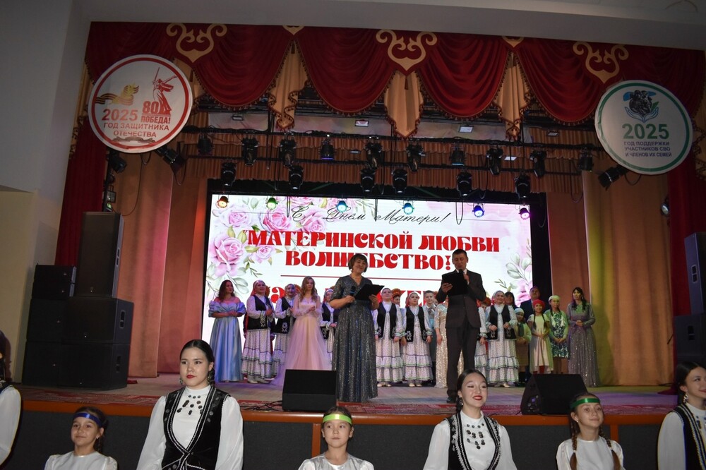 | 28 ноября в Районном дворце культуры прошел праздничный концерт, приуроченный чудесному празднику Дню матери «Материнской любви волшебство». Торжественную часть мероприятия открыл заместитель главы Администрации по социальным вопросам И.М. Сайфуллин. Ильнур Минигалеевич в своем выступлении выразил слова глубокого восхищения, уважения, признательности матерям, за мир, покой и счастье, которое они несут семье и обществу. На праздничном вечере многодетным мамам, мамам участников СВО были вручены Благодарственные письма главы Администрации муниципального района, памятные подарки и живые цветы. Также подарком для дорогих мам стали яркие, незабываемые музыкальные номера. На сцене выступили солисты и коллективы художественной самодеятельности Районного дворца культуры, Юмагузинской детской школы искусств, воспитанники детского сада «Родничок», Центра детского творчества и женский вокальный ансамбль матерей и жен участников СВО. День матери - это особенный праздник, который отмечается во многих странах мира. Он посвящен самому близкому и родному человеку в жизни каждого из нас - нашей маме. Этот день дает нам возможность выразить свою любовь, благодарность и уважение к женщине, которая подарила нам жизнь и окружила нас своей заботой и теплом. Ведущие праздника Зарема Назаргулова и Радик Махмутов пожелали прекрасным мамам душевных сил, женского счастья, взаимной любви и домашнего уюта. Эльвира Зиганшина, заведующая информационно – аналитическим отделом РДК Фото - Айсылу Назаргулова | |