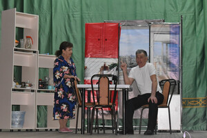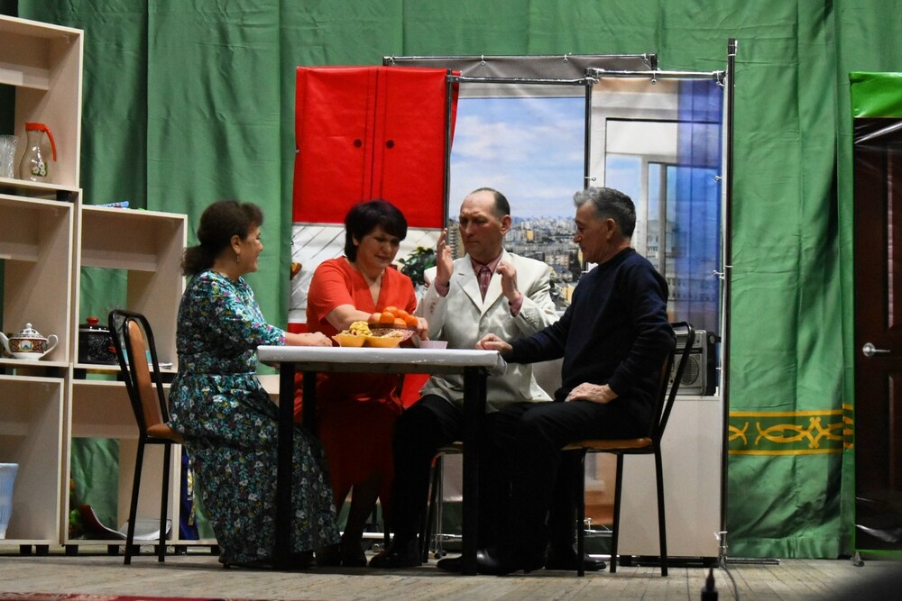 | 26 февраля на сцене Районного дворца культуры народный театр «Назлыйылга» представил зрителям комедию по пьесе Эсфира Ягудина «Ҡойоп ҡуйған фәрештә». Главные героини Зилия и Лилия, стараясь спастись от одиночества, дают брачные объявления в газету. На пути к своему счастью женщины попадают в неловкие и смешные ситуации. Далее события разворачиваются бурно и подводят одиноких героев к самому главному выбору в своей жизни. В спектакле роли сыграли: Айгуль Махмутова, Нияз Ишемгулов, Ришат Фаттахов, Мунира Тухватуллина. Режиссер-постановщик спектакля - лауреат премии им.Ш.Худайбердина Фаима Акъюлова. Эльвира Зиганшина, заведующая информационно – аналитическим отделом РДК Фото - Айсылу Назаргулова | |