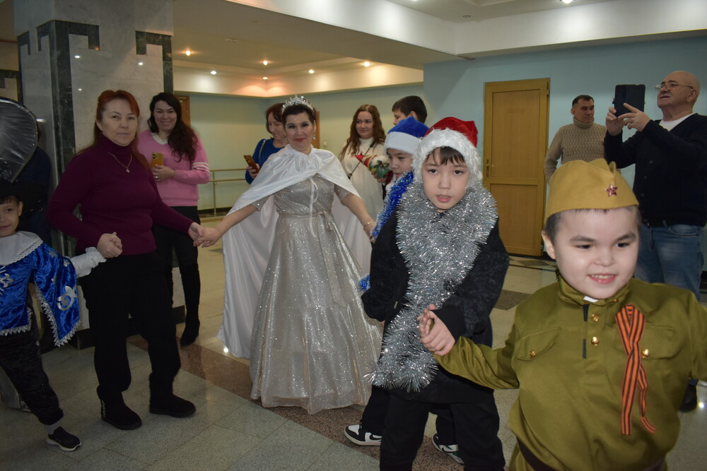 | 23 декабря в Районном дворце культуры прошла районная Ёлка главы Администрации для детей с ограниченными возможностями здоровья. Глава Администрации муниципального района Марат Салимович Искужин поздравил ребят с наступающими новогодними праздниками, пожелал всем крепкого здоровья, счастья, тепла, больше улыбок, ярких дней и приятных сюрпризов! Затем слова поздравлений прозвучали от главного врача ГБУЗ РБ Клинической больницы скорой медицинской помощи г. Уфы, депутата Государственного Собрания-Курултая Республики Башкортостан седьмого созыва Ирины Марсиловны Карамовой. Новый год – один из самых долгожданных праздников для детей. В это волшебное время они ждут прихода Деда Мороза и верят в чудеса. Работники Районного дворца культуры, воспитанники Мраковской детской школы искусств им.З.Биишевой и Центра детского творчества представили новогоднюю сказку «Ход конем». Ребята и родители остались довольны и насладились встречей с новогодним чудом. После завершения театрализованного представления, в фойе дворца культуры была организована новогодняя игровая программа. В веселом хороводе детей развлекали Дед Мороз со Снегурочкой и любимые сказочные герои. В завершении мероприятия каждый ребенок получил сладкий новогодний подарок. Праздник был полон солнечных улыбок и отличного настроения. Мы надеемся, что теплые воспоминания об этом празднике останутся у всех присутствовавших надолго. Эльвира Зиганшина, заведующая информационно – аналитическим отделом РДК Фото автора | |