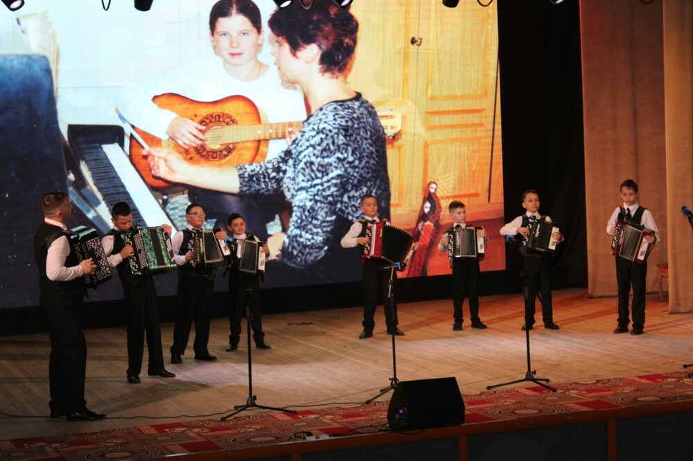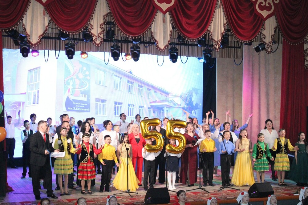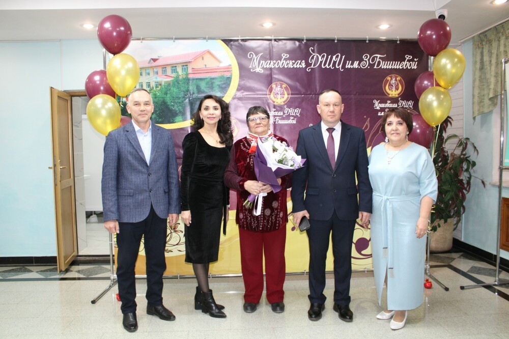 | Вот и отгремел 55-летний юбилей нашей Мраковской детской школы искусств им. З. Биишевой. Вечер собрал полный зал благодарных зрителей. Начался вечер просмотром видеопоздравлений выпускников и выступлением преподавателей школы, которые рассказали стихи и спели песню о школе искусств. С первых слов коллектива читалась безграничная любовь к своей работе, к своей школе искусств. Песню «С юбилеем!» исполнил образцовый детский хор «Рондо» совместно со своим хормейстером Ф. З. Каримовой. Продолжили вечер творческие коллективы и юные музыканты школы: Виктория Савина сыграла на фортепиано, Богдан Смолянский и Кирилл Болдырев — дуэтом на ксилофонах, ансамбль баянистов «БаянДрайв» (руководитель Д. В. Камалеев), образцовый ансамбль «Веселые ребята» (руководитель С. Ю. Назаргулов), образцовый ансамбль кураистов «Кыпсак» (руководитель заслуженный работник культуры Республики Башкортостан Ю. В. Кидрасов), образцовый ансамбль танца «Грация» (руководитель Г. Ш. Байтуганова), ансамбль танца «Радуга» (руководитель А. Х. Валидова), фольклорный ансамбль «Мурадым» (руководитель З. Ю. Сайфуллина), ансамбль гитаристов (руководители С. Ю. Назаргулов и В. Р. Кильдияров), ансамбль скрипачей «Люмьен» и народный ансамбль народных инструментов преподавателей «Мондаръя» (руководитель К. Х. Абдрахманова), младший хор «Город детства» (руководитель Г. С. Журынкина), дуэт думбыристов Гульназира Гафарова и Венер Кильдияров, образцовый вокальный ансамбль «Дэмитон» и «Афарин» (руководитель Ф. З. Каримова). Украсили концерт наши выпускники Рим Кутлучурин, Аиша Зиганшина, Линар Сайфутдинов, Сабина Мулюкова. Концерт сопровождался показом фотографий из жизни школы с изображением первых преподавателей отделений, первых учащихся и творческой жизни школы. В фойе была оформлена выставка работ учащихся отделения «Изобразительное искусство» (под руководством преподавателей Н. Ф. Магизовой, Э. Х. Бакировой, Р. А. Валидова), а также стенды с историей каждого отделения. В завершение мероприятия директор школы искусств, заслуженный работник культуры Республики Башкортостан Флорида Закиевна Каримова поздравила с юбилеем и поблагодарила всех, кто причастен к деятельности школы искусств. В торжественной обстановке состоялось награждение преподавателей и сотрудников школы искусств. «Грандиозный концерт» — такими впечатлениями делились в этот день зрители, и до позднего вечера преподаватели делились друг с другом восхищенными сообщениями, словами благодарности за работу с учащимися и организацию мероприятия высокого уровня от родителей учащихся. Действительно, мероприятие прошло очень празднично и красочно. А присутствие на вечере почетных гостей — заместителя Главы Кугарчинского района по социальным вопросам Ильнура Миннигалеевича Сайфуллина, начальника Районного отдела образования Расуля Радиковича Ахмедьянова, начальника отдела культуры Илюзы Рафкатовны Нигаматуллиной, ветерана труда Кузнецовой Антониды Витальевны (долгое время работавшей заместителем Главы Кугарчинского района, курировавшей работу отдела культуры), а также поздравления Республиканского учебно-методического центра по образованию Министерства культуры Республики Башкортостан, Салаватского музыкального колледжа, Стерлитамакского государственного театрально-концертного объедин