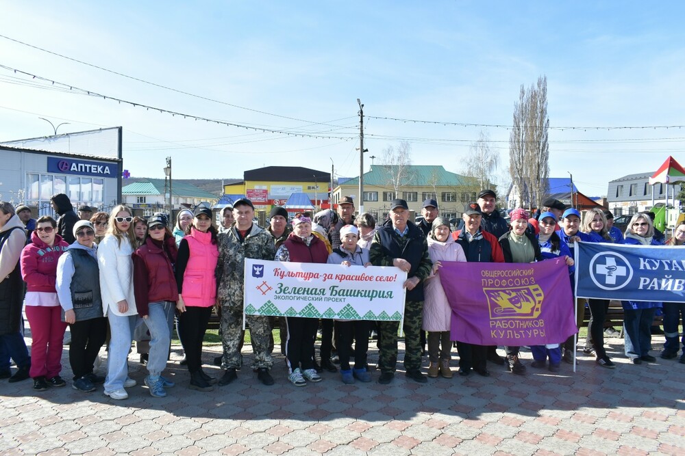 | По поручению главы Башкортостана Радия Хабирова с 26 марта 2026 года в республике дан старт проведению мероприятий по уборке и благоустройству территорий населенных пунктов. 18 апреля коллективы учреждений культуры приняли активное участие в республиканской экологической акции «Зеленая Башкирия». Торжественное открытие с музыкальными номерами прошло в парке отдыха им. З.Биишевой. В рамках акции предприятиями села и района были посажены тысячи зеленых насаждений, кустарников, крупномерных деревьев. Акция «Зелёная Башкирия» впервые прошла в апреле 2019 года. В ней тогда приняли участие более 160 тысяч жителей республики, были разбиты 164 тематические аллеи, посажено более 109 тысяч деревьев и кустарников. | |